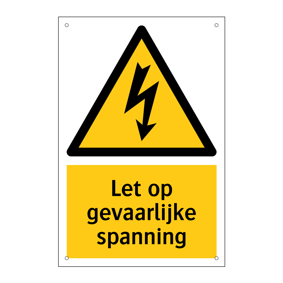 Waarschuwingsbord met de tekst Let op gevaarlijke spanning