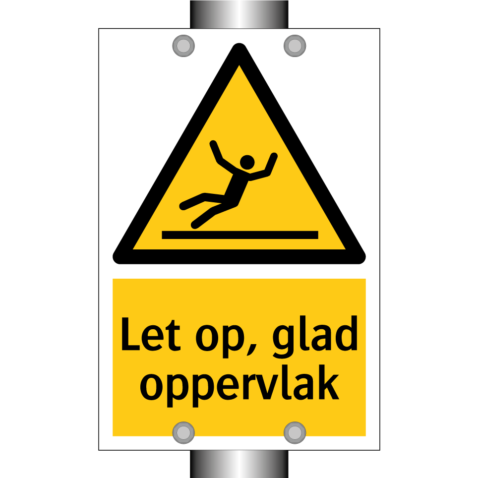 Waarschuwingsbord met de tekst Let op, glad oppervlak