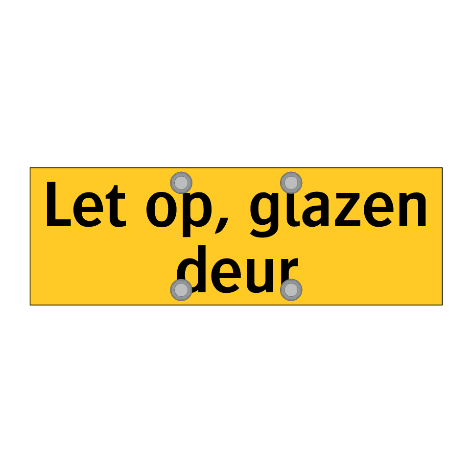 Deze waarschuwingsbord is essentieel voor het verhogen van de veiligheid in omgevingen met glazen deuren. Plaats deze bord op ooghoogte bij ingangen, doorgangen of andere locaties waar glazen deuren aanwezig zijn om ongelukken te voorkomen. Ideaal voor kantoren, winkels, openbare gebouwen en woningen. Door de opvallende gele achtergrond en zwarte tekst trekt deze bord direct de aandacht en waarschuwt effectief voor de aanwezigheid van een glazen deur. Zorg voor een veilige omgeving door bezoekers en medewerkers tijdig te informeren over mogelijke gevaren. Deze waarschuwingsbord helpt bij het minimaliseren van risico's en bevordert een veilige doorgang.