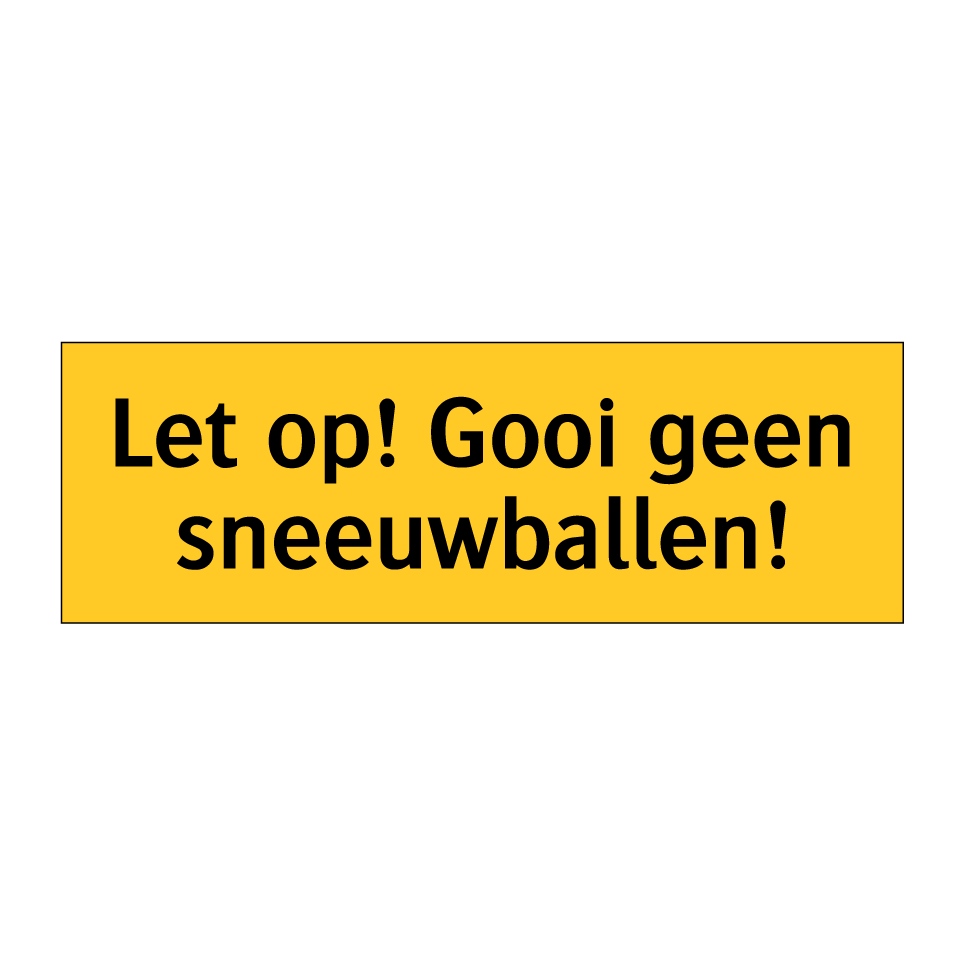 Waarschuwingsbord met de tekst Let op! Gooi geen sneeuwballen!