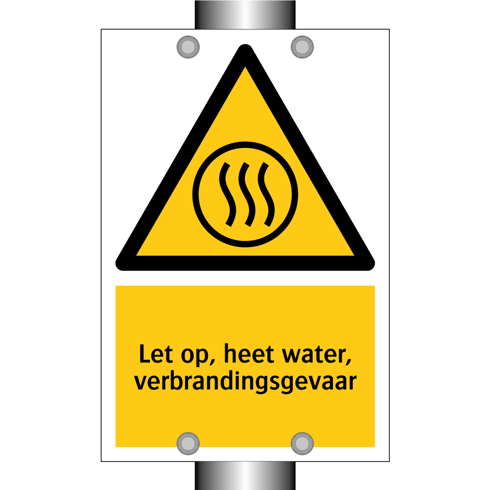 Waarschuwingsbord met de tekst Let op, heet water, verbrandingsgevaar