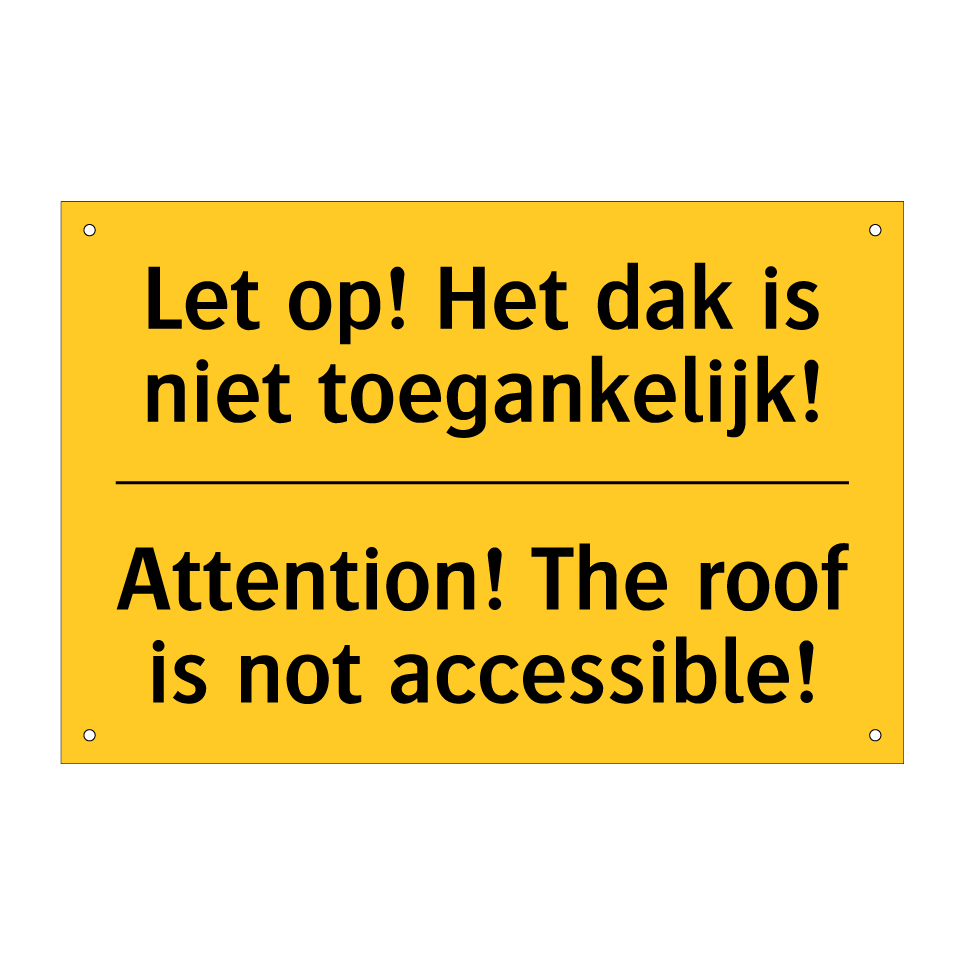 Waarschuwingsbord met de tekst Let op! Het dak is niet toegankelijk! / Attention! The roof is not accessible!