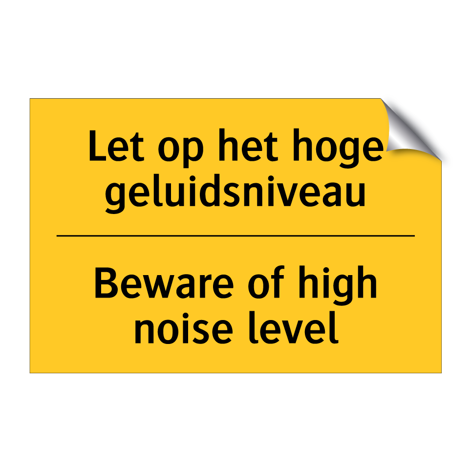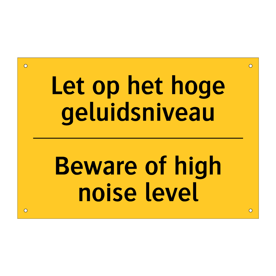 Waarschuwingsbord met de tekst Let op het hoge geluidsniveau / Beware of high noise level