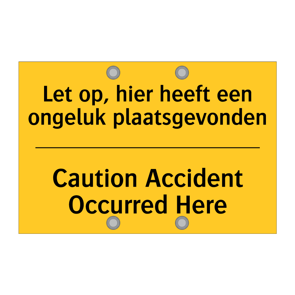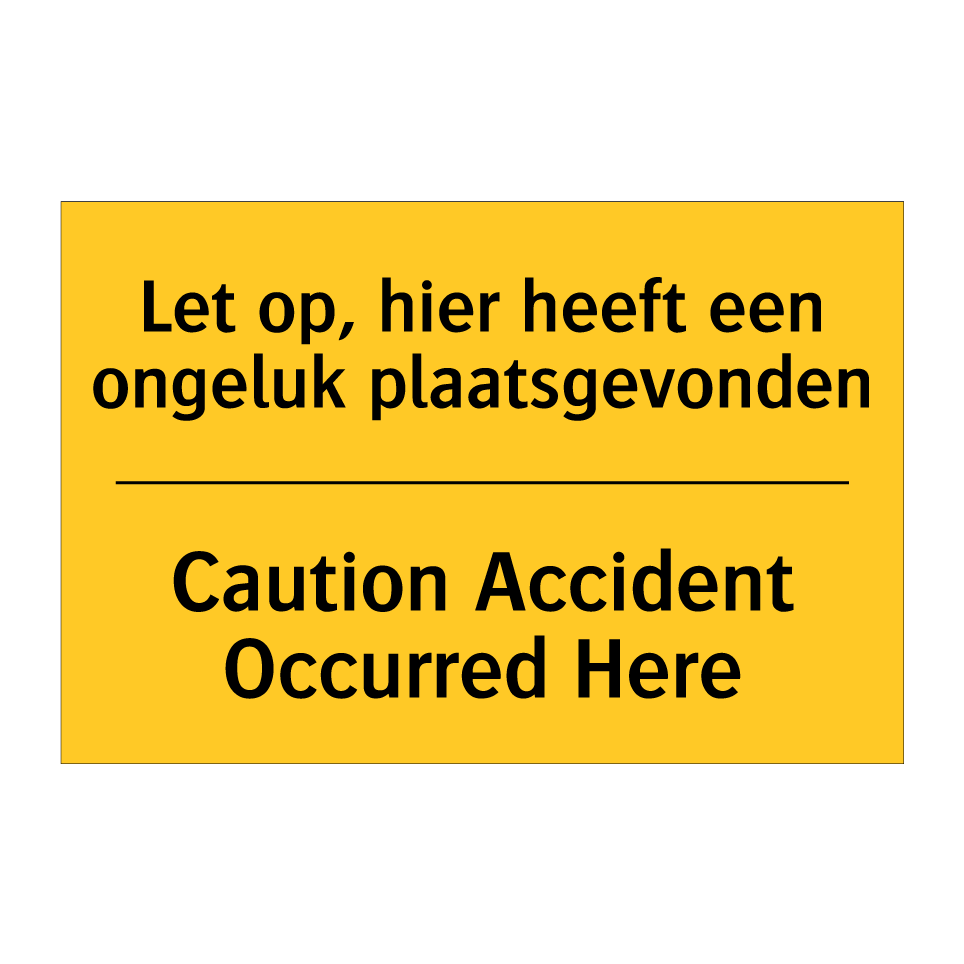 Waarschuwingsbord met de tekst Let op, hier heeft een ongeluk plaatsgevonden / Caution Accident Occurred Here