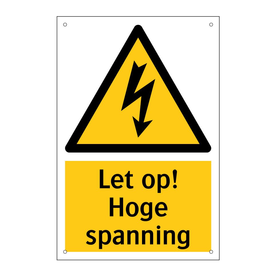 Waarschuwingsbord met de tekst Let op! Hoge spanning