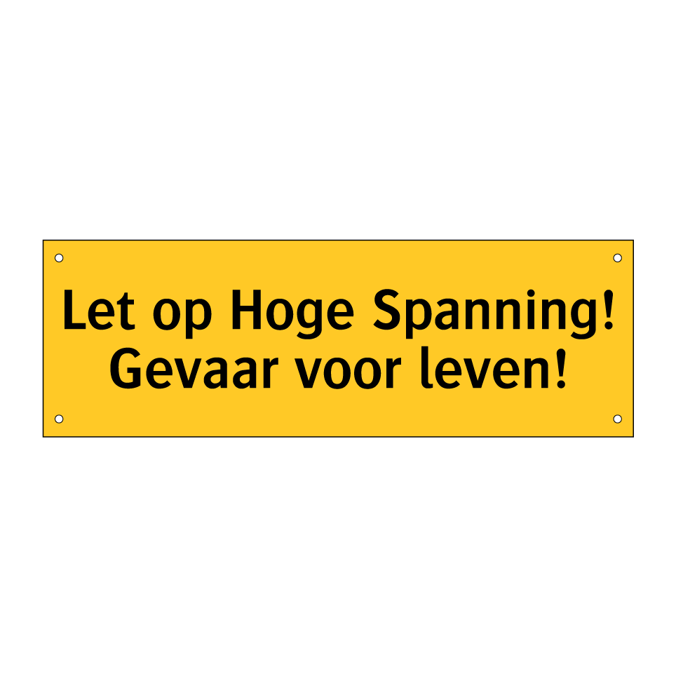 Waarschuwingsbord met de tekst Let op Hoge Spanning! Gevaar voor leven!