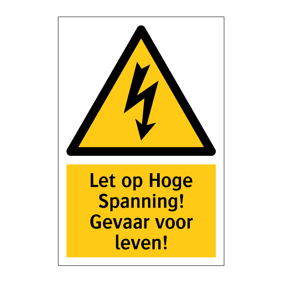 Deze waarschuwingsbord is essentieel voor het waarborgen van de veiligheid in omgevingen met hoge spanning. Plaats deze bord op strategische locaties zoals elektriciteitskasten, transformatorstations, en industriële installaties om personeel en bezoekers te waarschuwen voor het levensgevaar. Door de duidelijke symbolen en tekst wordt onmiddellijk de aandacht getrokken, wat helpt om ongelukken te voorkomen. Dit waarschuwingsbord is ideaal voor zowel binnen- als buitengebruik en zorgt ervoor dat iedereen zich bewust is van de potentiële gevaren. Verhoog de veiligheid en verminder risico's door deze bord op zichtbare plekken te installeren.
