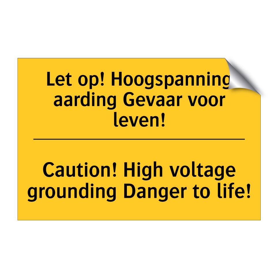 Waarschuwingsbord met de tekst Let op! Hoogspanning aarding Gevaar voor leven! / Caution! High voltage grounding Danger to life!