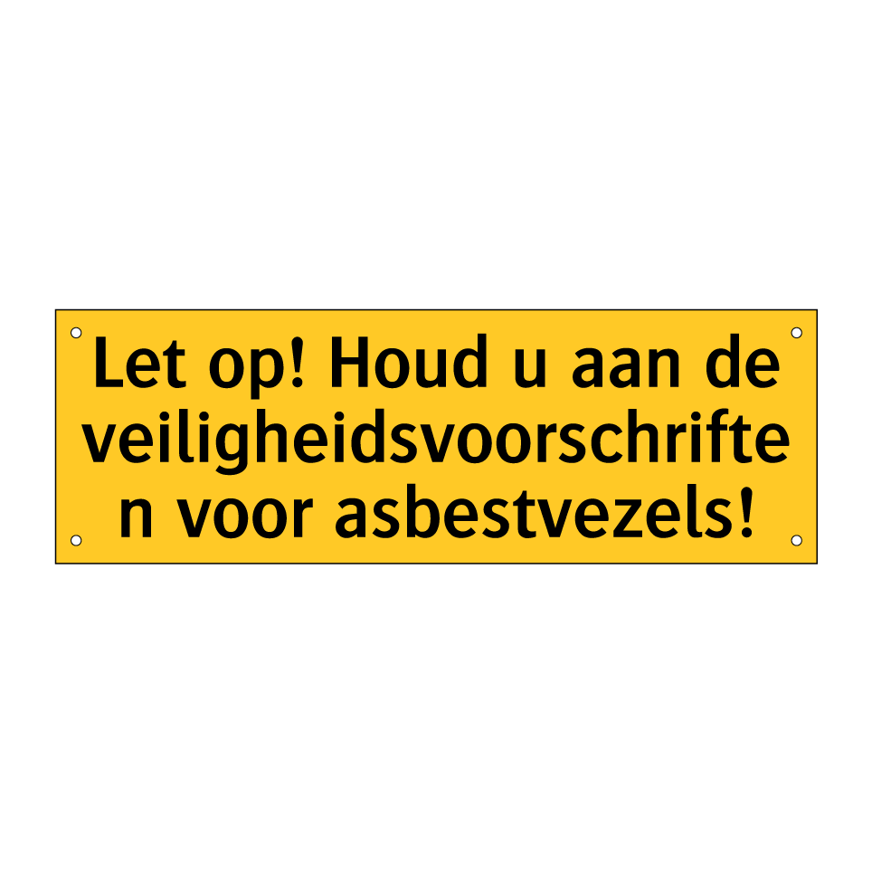 Waarschuwingsbord met de tekst Let op! Houd u aan de veiligheidsvoorschriften voor asbestvezels!