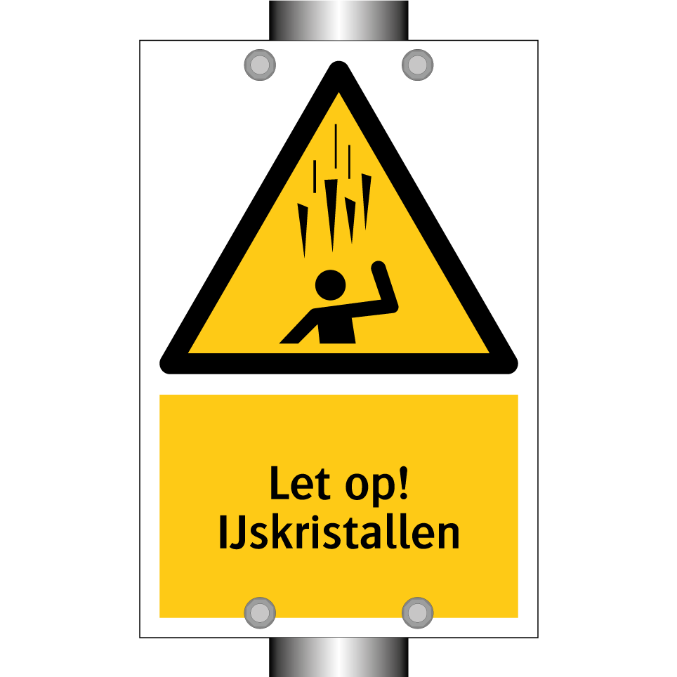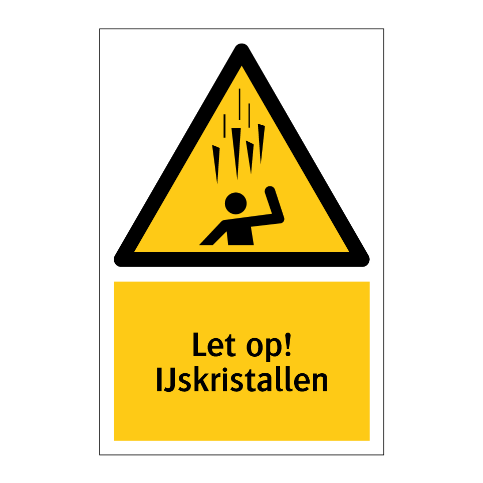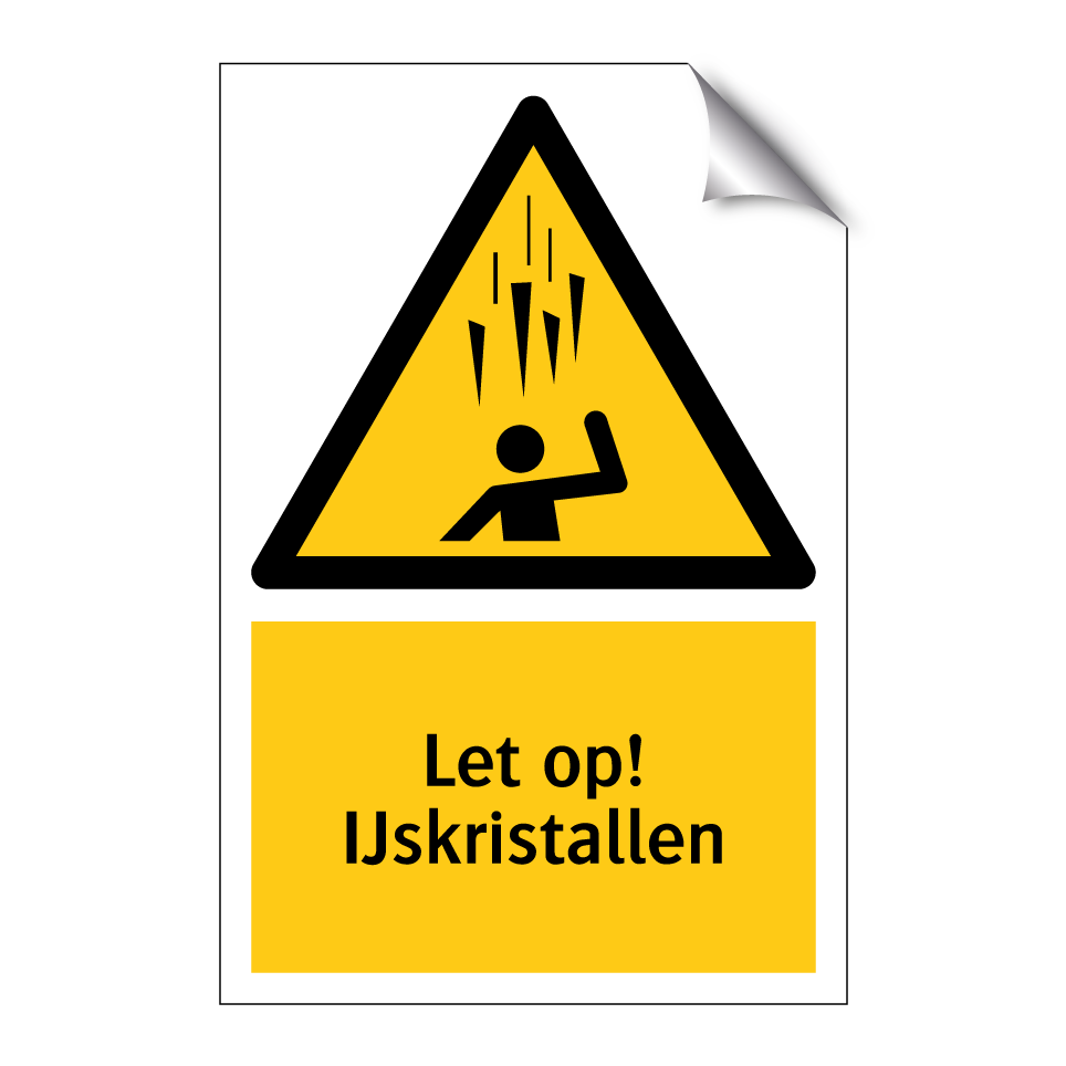 Waarschuwingsbord met de tekst Let op! IJskristallen