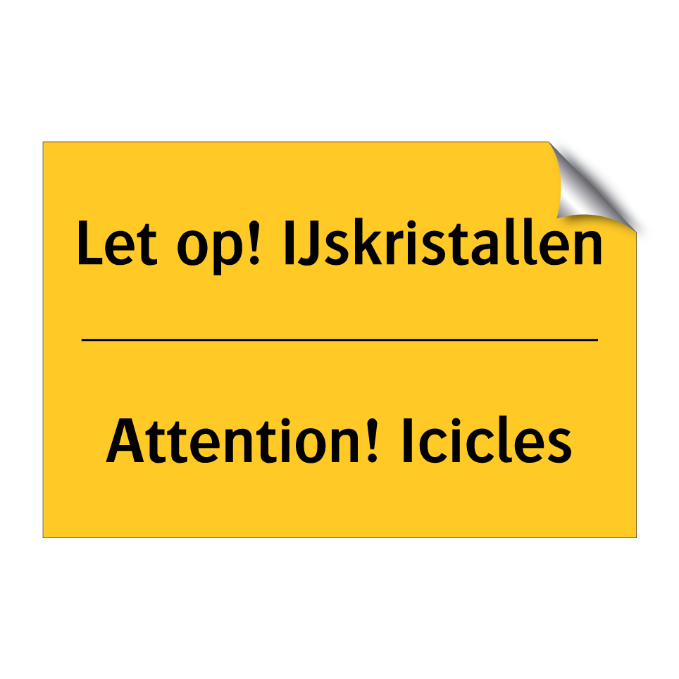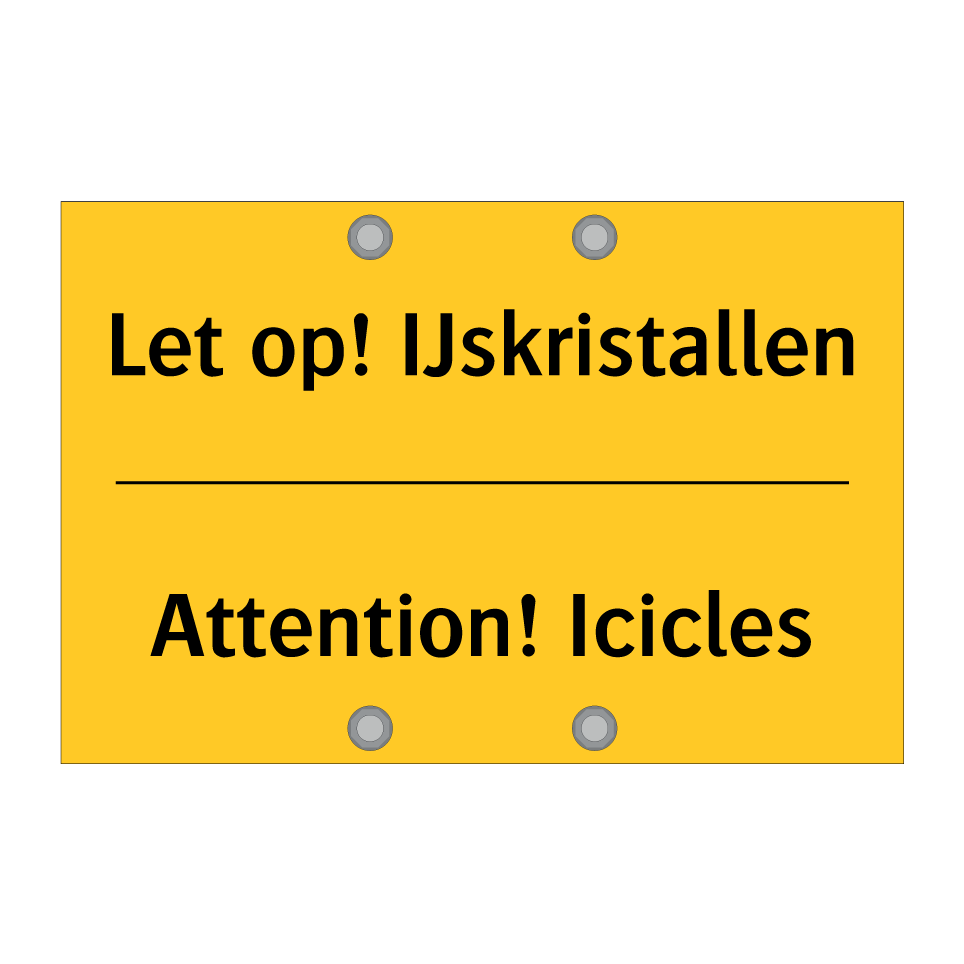 Waarschuwingsbord met de tekst Let op! IJskristallen / Attention! Icicles