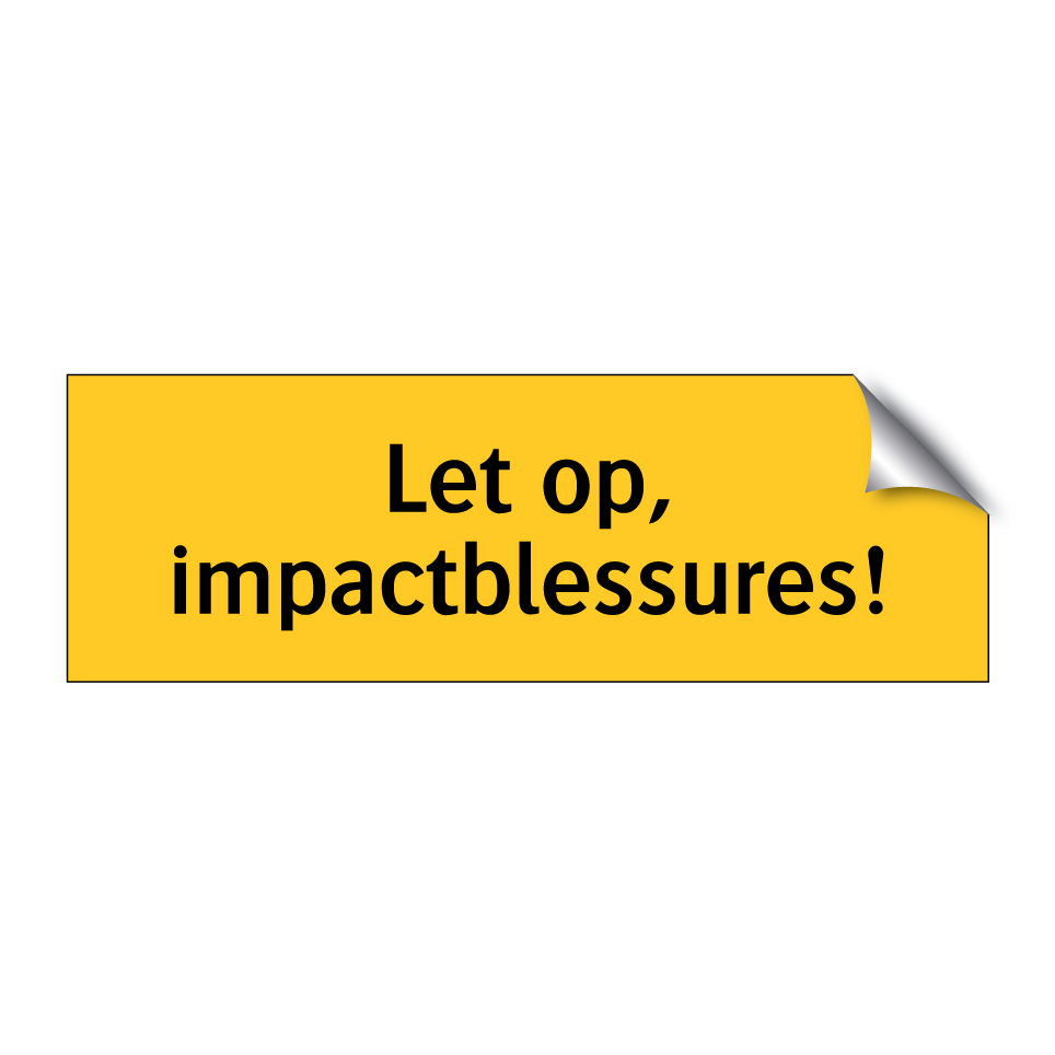 Waarschuwingsbord met de tekst Let op, impactblessures!