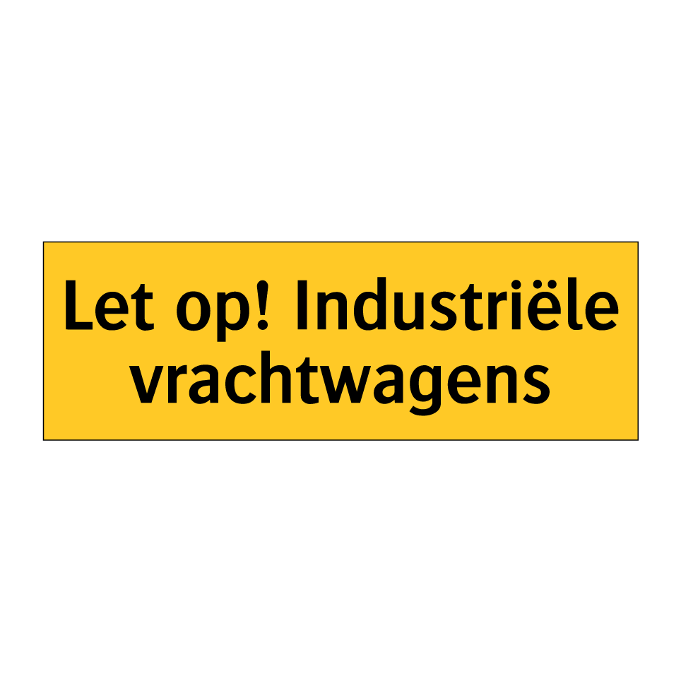 Waarschuwingsbord met de tekst Let op! Industriële vrachtwagens