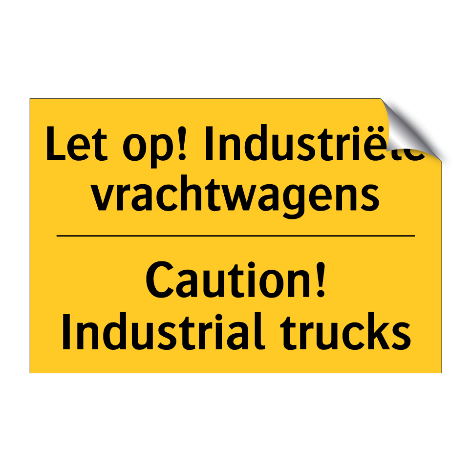 Waarschuwingsbord met de tekst Let op! Industriële vrachtwagens / Caution! Industrial trucks