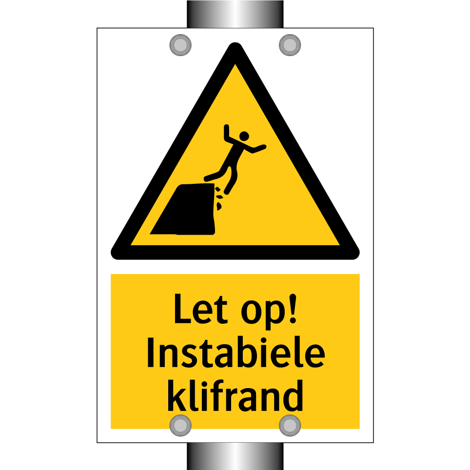 Deze waarschuwingsbord is essentieel voor het markeren van gevaarlijke klifranden. Het waarschuwt voorbijgangers voor de instabiele randen en helpt ongelukken te voorkomen. Plaats deze bord op strategische locaties zoals wandelpaden, klifgebieden en toeristische attracties waar de kans op instorting groot is. Door deze waarschuwingsbord te gebruiken, verhoogt u de veiligheid en bewustwording van bezoekers. Ideaal voor natuurreservaten, kustgebieden en andere risicovolle omgevingen. Zorg ervoor dat iedereen op de hoogte is van de gevaren en voorkom ongevallen met deze duidelijke en effectieve waarschuwingsbord.