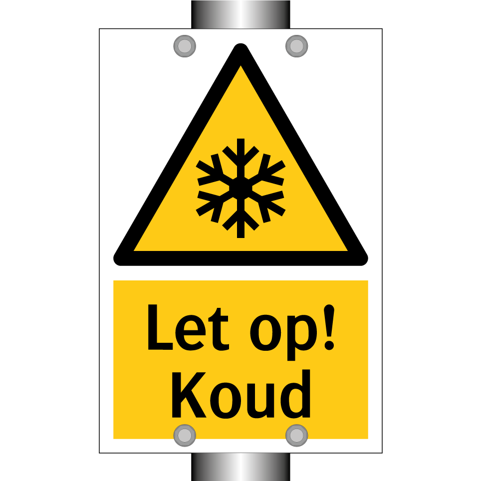 Waarschuwingsbord met de tekst Let op! Koud