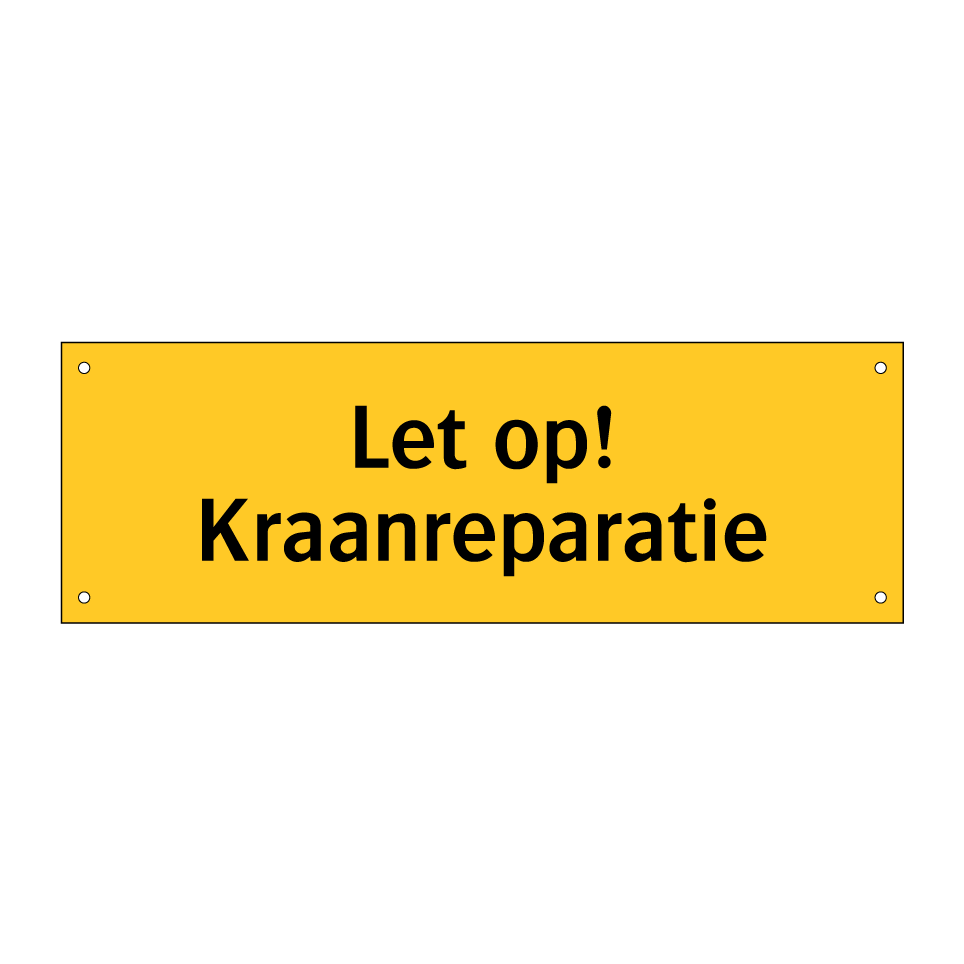 Waarschuwingsbord met de tekst Let op! Kraanreparatie
