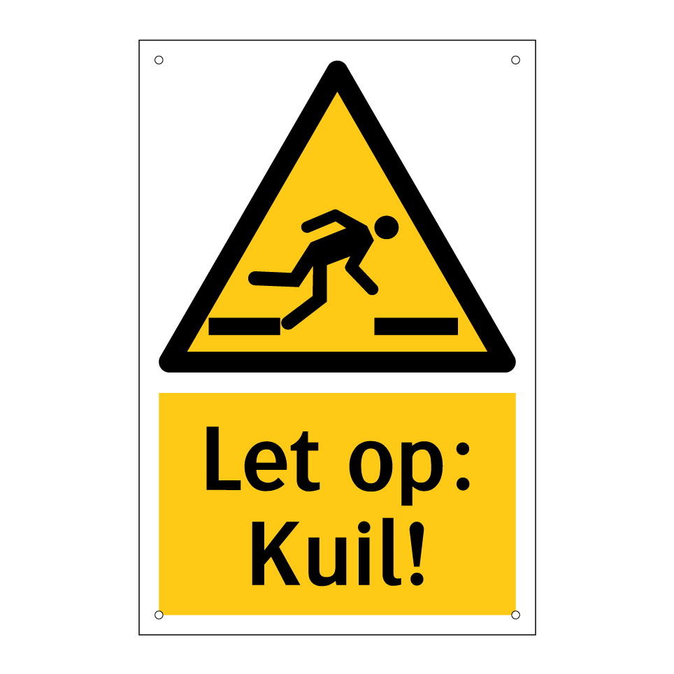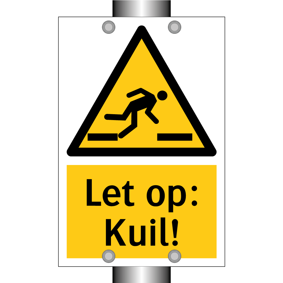 Waarschuwingsbord met de tekst Let op: Kuil!