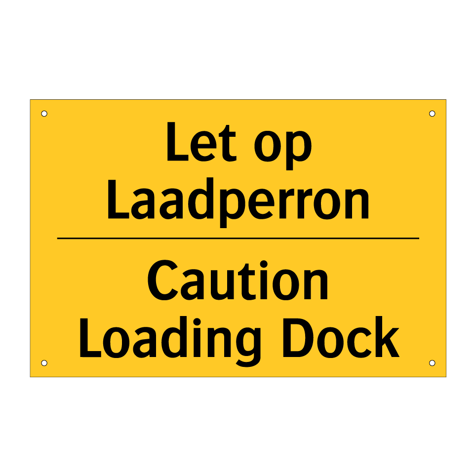 Waarschuwingsbord met de tekst Let op Laadperron / Caution Loading Dock
