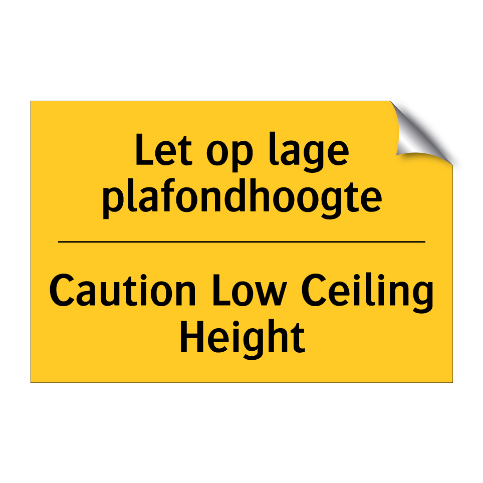 Waarschuwingsbord met de tekst Let op lage plafondhoogte / Caution Low Ceiling Height