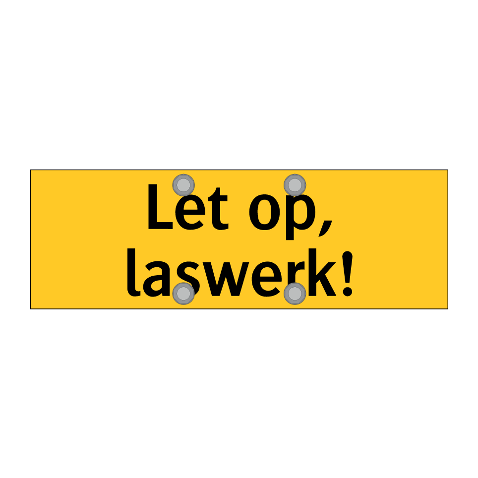 Waarschuwingsbord met de tekst Let op, laswerk!