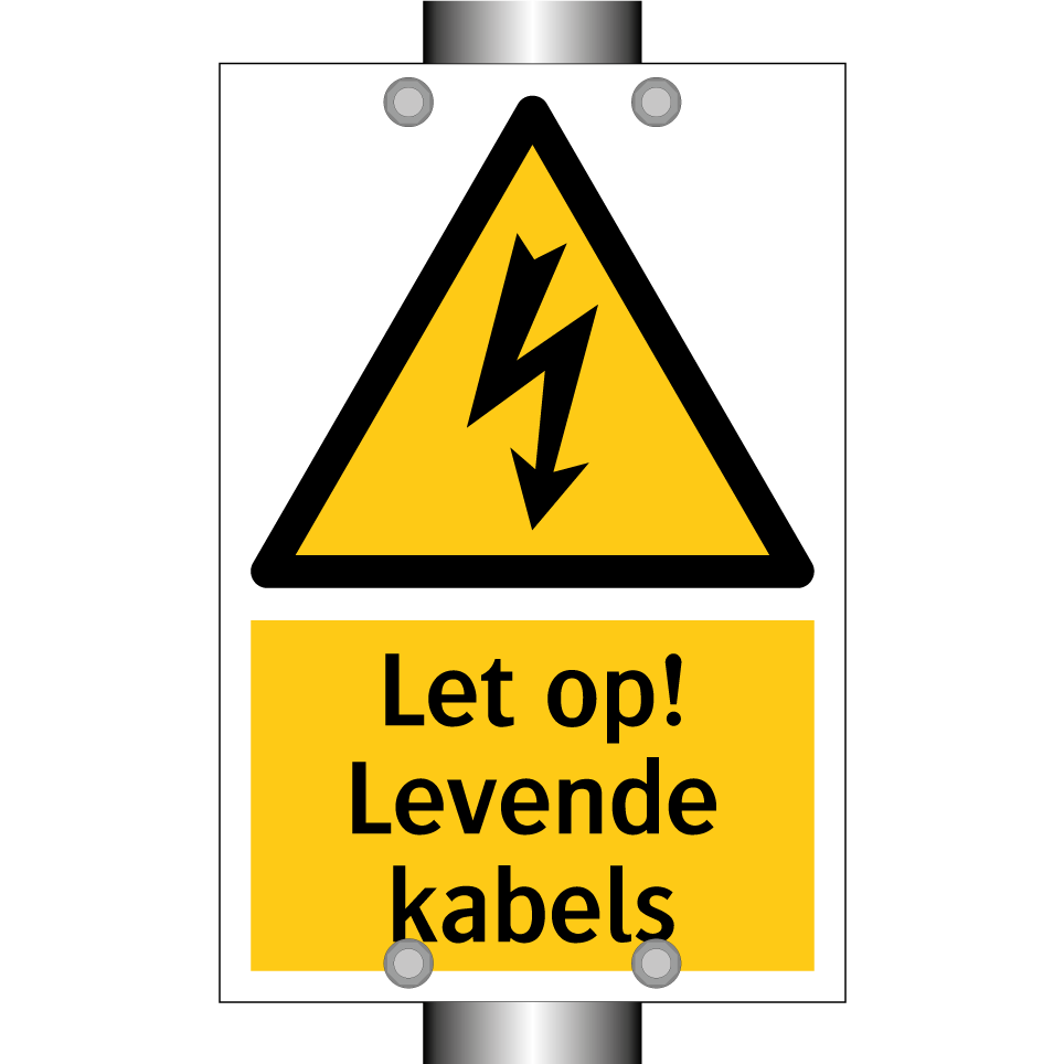 Waarschuwingsbord met de tekst Let op! Levende kabels