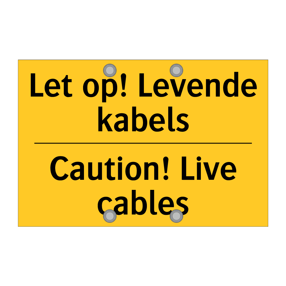 Waarschuwingsbord met de tekst Let op! Levende kabels / Caution! Live cables