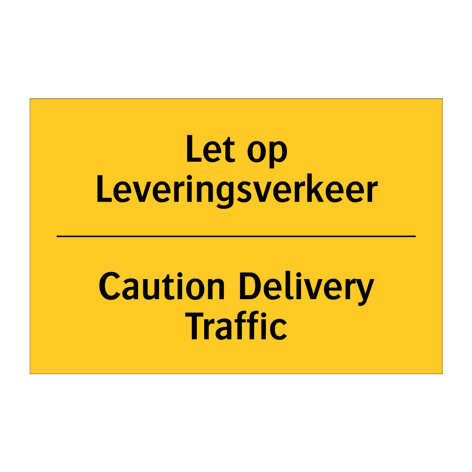 Waarschuwingsbord met de tekst Let op Leveringsverkeer / Caution Delivery Traffic