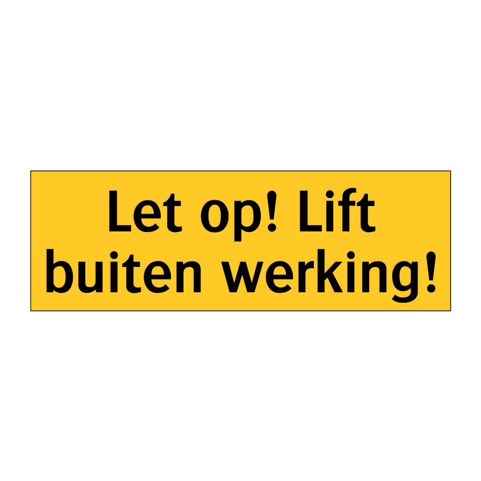 Waarschuwingsbord met de tekst Let op! Lift buiten werking!