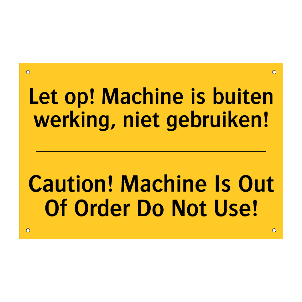 Waarschuwingsbord met de tekst Let op! Machine is buiten werking, niet gebruiken! / Caution! Machine Is Out Of Order Do Not Use!