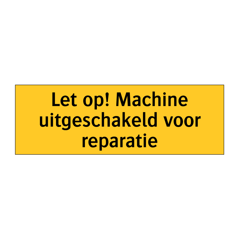 Waarschuwingsbord met de tekst Let op! Machine uitgeschakeld voor reparatie