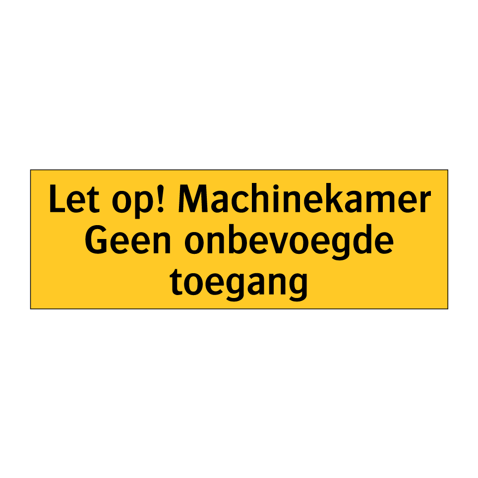 Waarschuwingsbord met de tekst Let op! Machinekamer Geen onbevoegde toegang