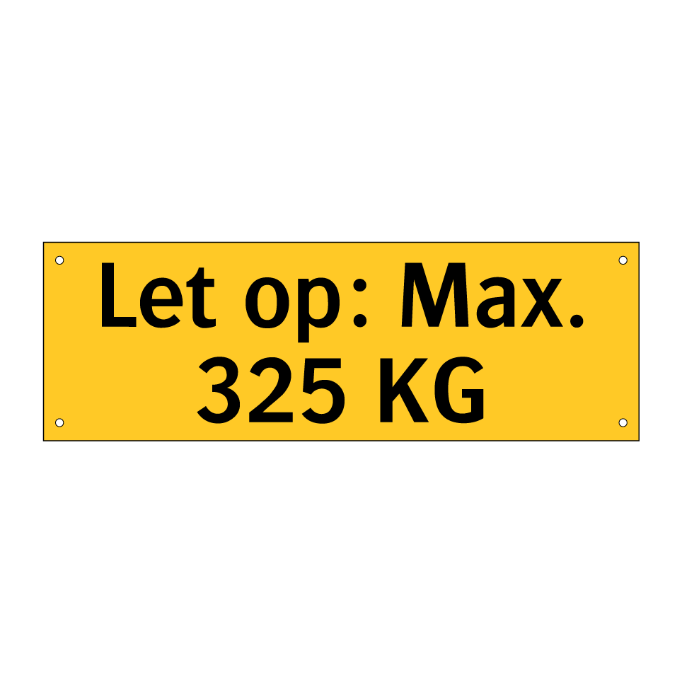 Waarschuwingsbord met de tekst Let op: Max. 325 KG