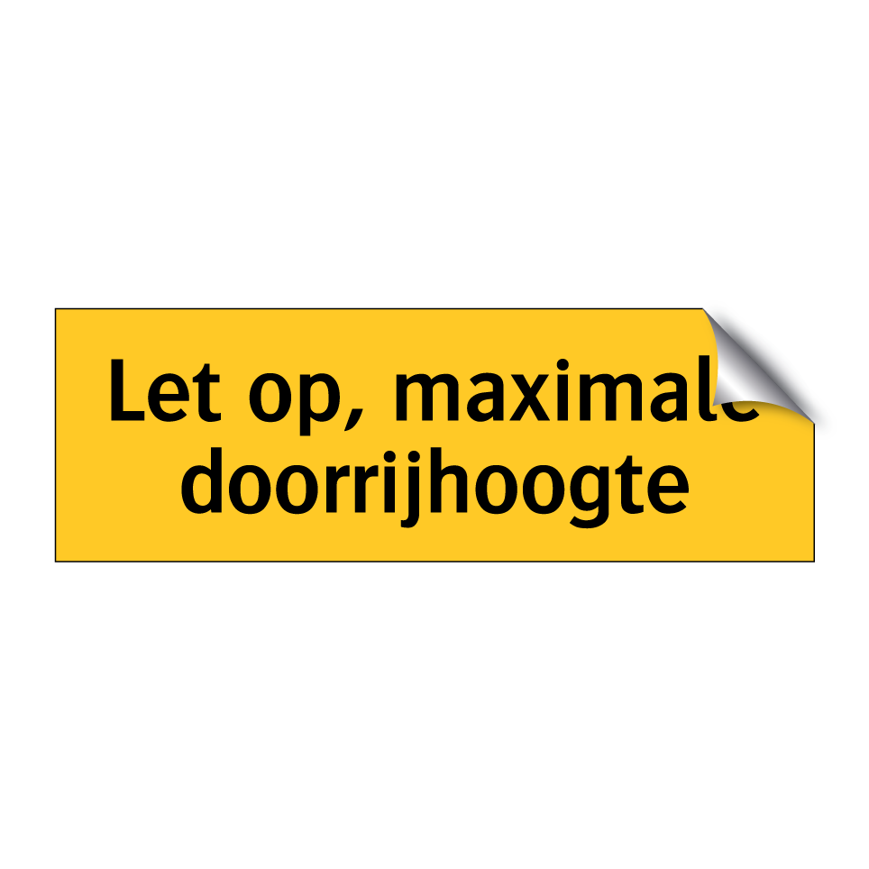 Deze waarschuwingsbord is essentieel voor het waarborgen van de veiligheid in gebieden met beperkte doorrijhoogte. Plaats deze bord bij ingangen van parkeergarages, tunnels, onderdoorgangen of laadperrons om bestuurders te waarschuwen voor de maximale doorrijhoogte. Door de opvallende gele achtergrond en zwarte tekst is de waarschuwing duidelijk zichtbaar, zelfs van een afstand. Dit waarschuwingsbord helpt ongelukken en schade aan voertuigen te voorkomen door tijdig te informeren over de hoogtebeperking. Ideaal voor zowel openbare als privéterreinen waar hoogtebeperkingen gelden. Zorg voor een veilige doorgang en voorkom ongevallen met deze duidelijke en effectieve waarschuwingsbord.