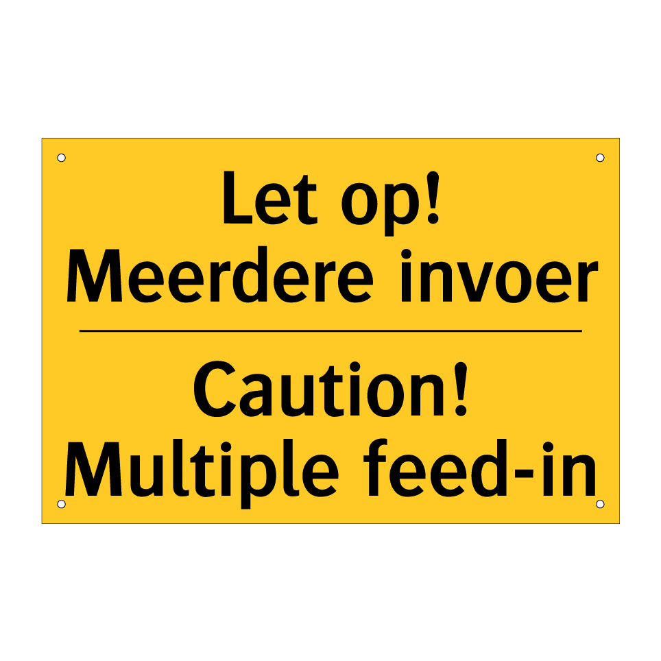 Waarschuwingsbord met de tekst Let op! Meerdere invoer / Caution! Multiple feed-in