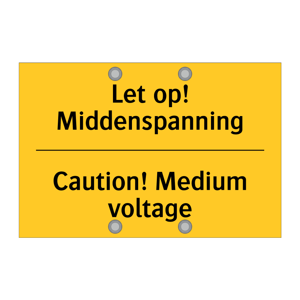 Waarschuwingsbord met de tekst Let op! Middenspanning / Caution! Medium voltage