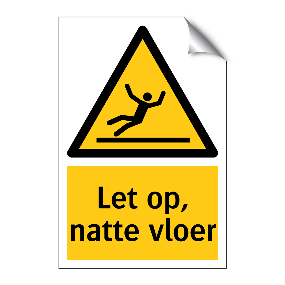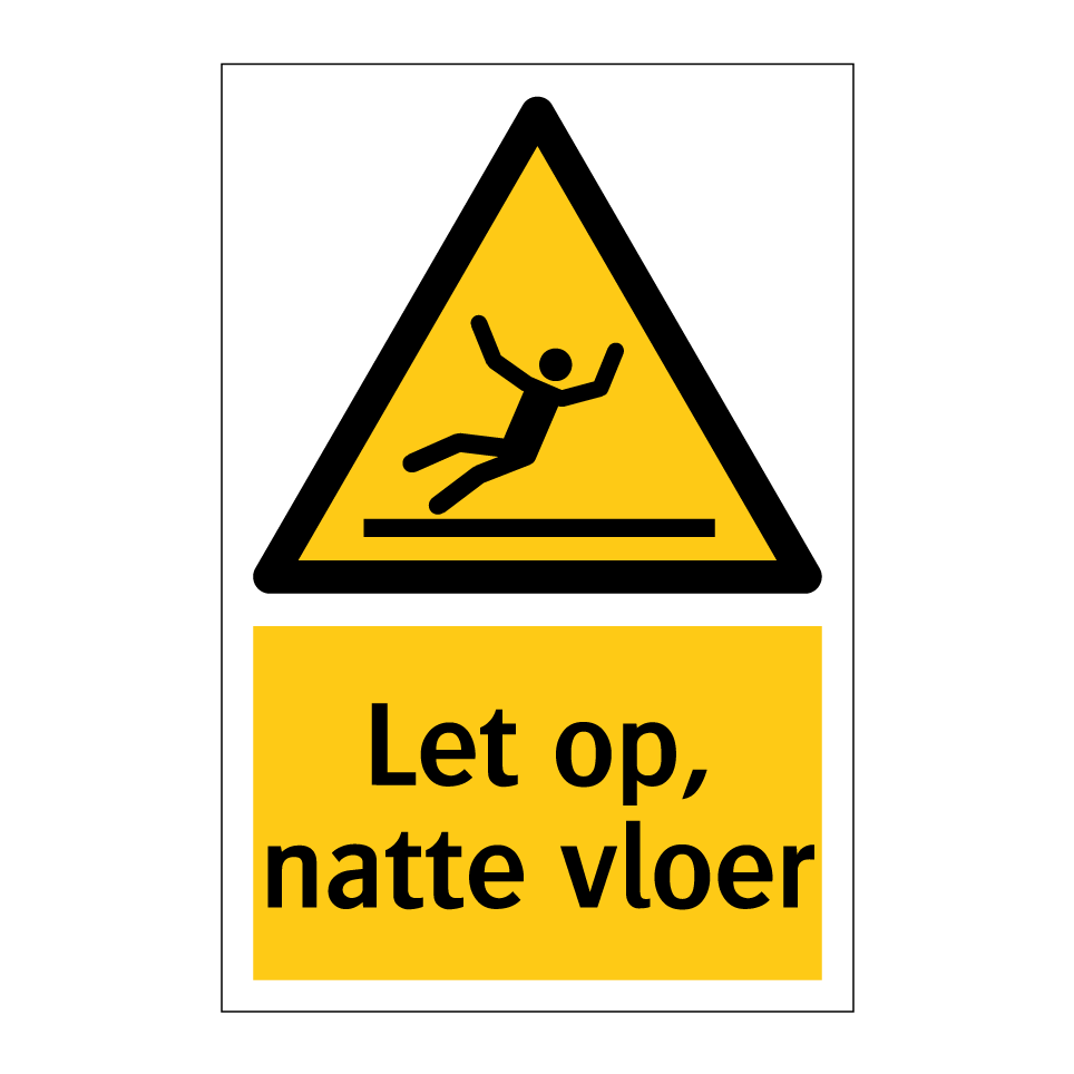 Waarschuwingsbord met de tekst Let op, natte vloer