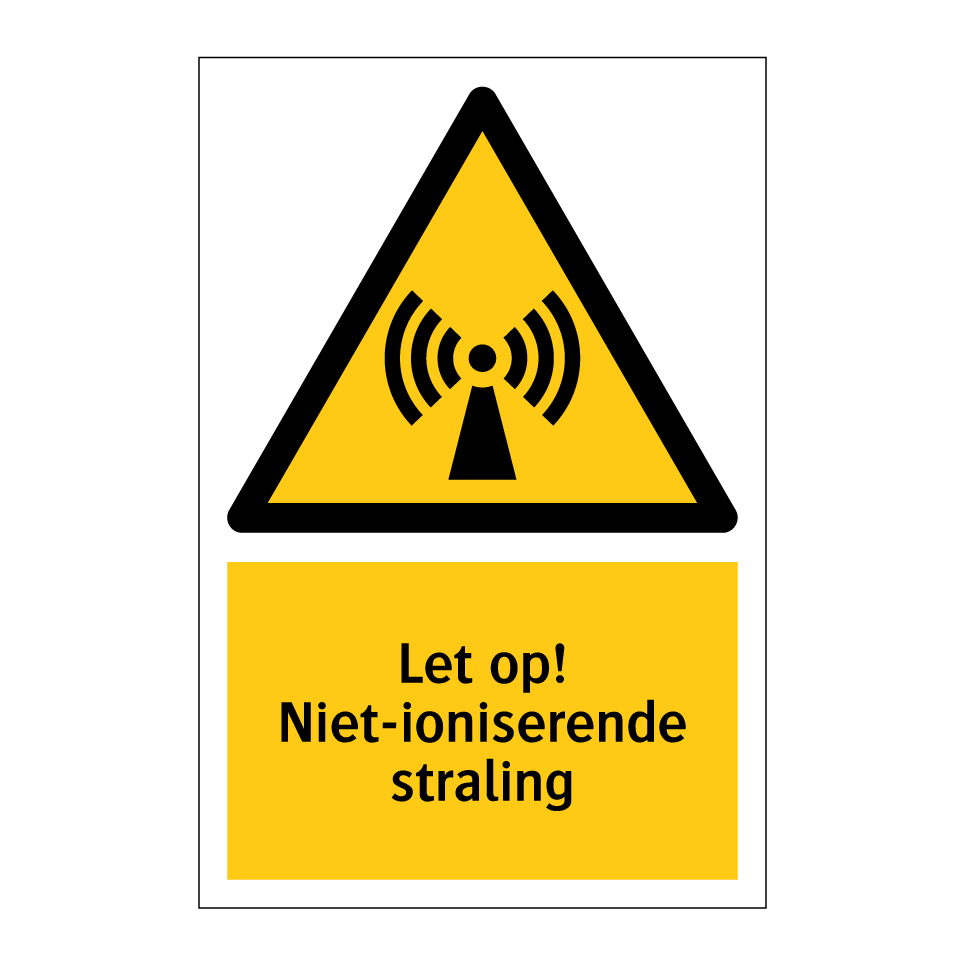 Waarschuwingsbord met de tekst Let op! Niet-ioniserende straling