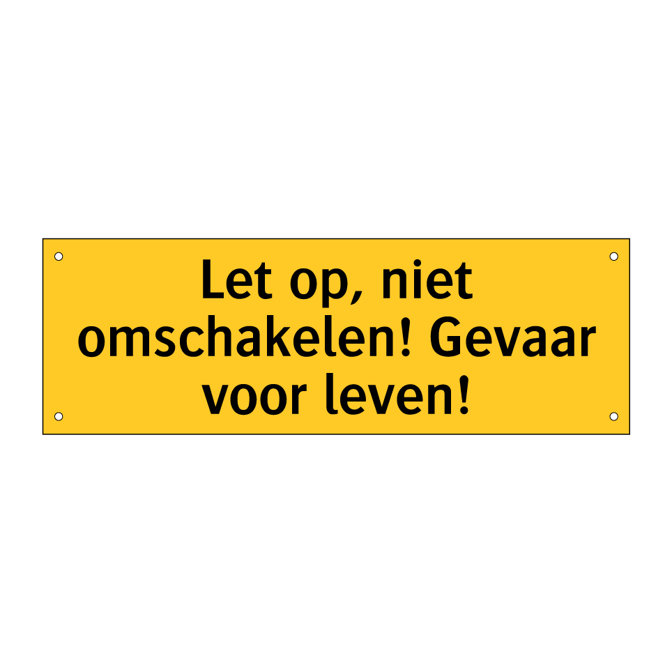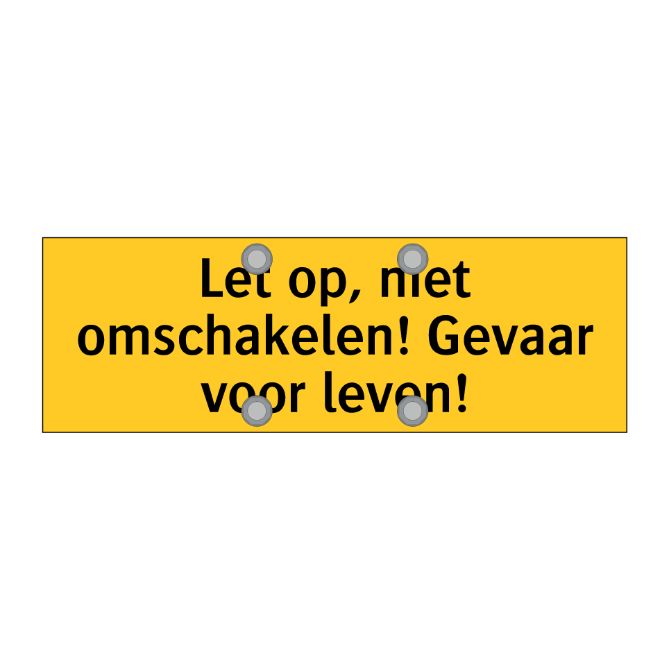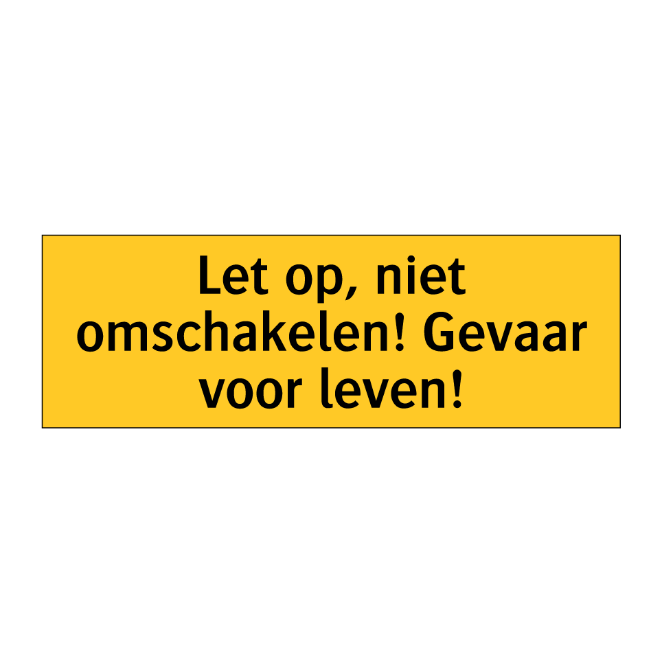Waarschuwingsbord met de tekst Let op, niet omschakelen! Gevaar voor leven!