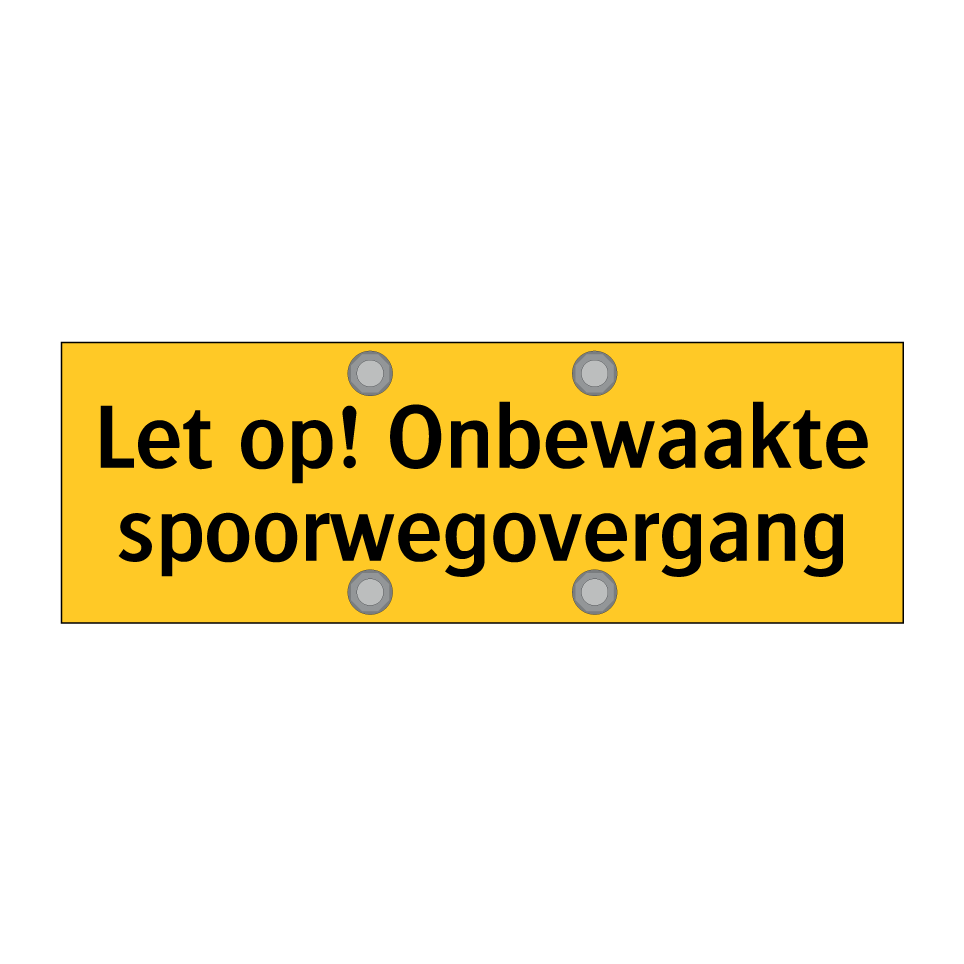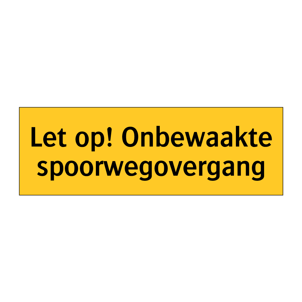 Waarschuwingsbord met de tekst Let op! Onbewaakte spoorwegovergang