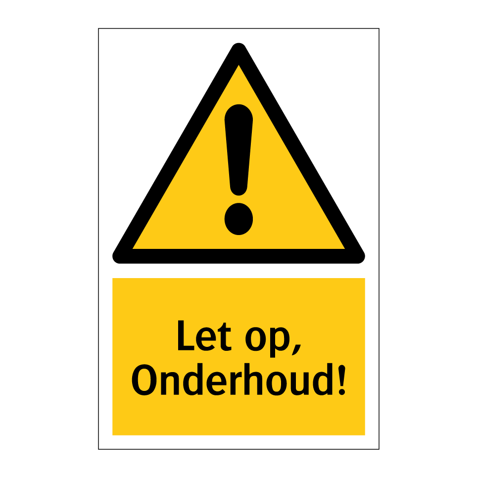Waarschuwingsbord met de tekst Let op, Onderhoud!