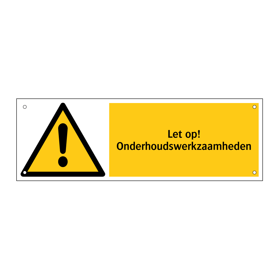 Waarschuwingsbord met de tekst Let op! Onderhoudswerkzaamheden