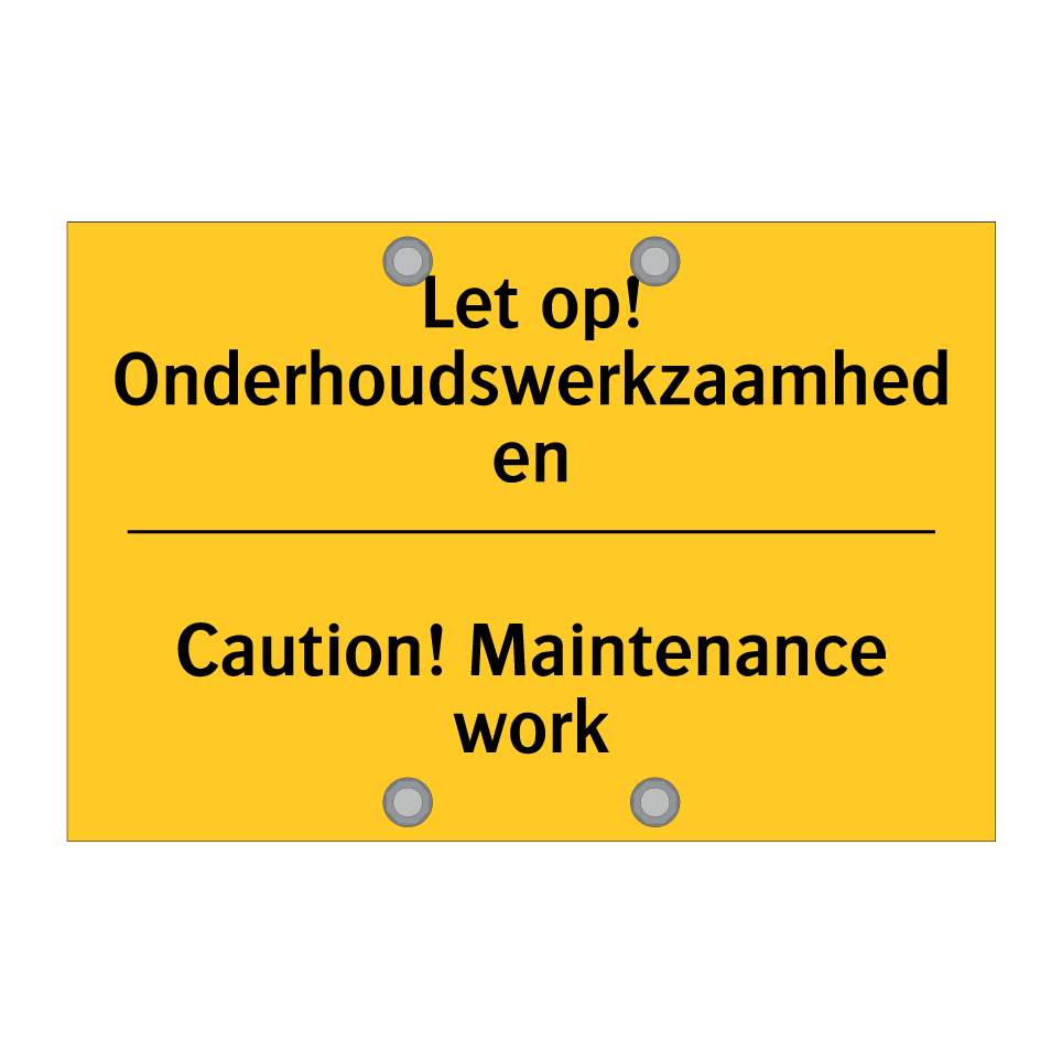 Waarschuwingsbord met de tekst Let op! Onderhoudswerkzaamheden / Caution! Maintenance work