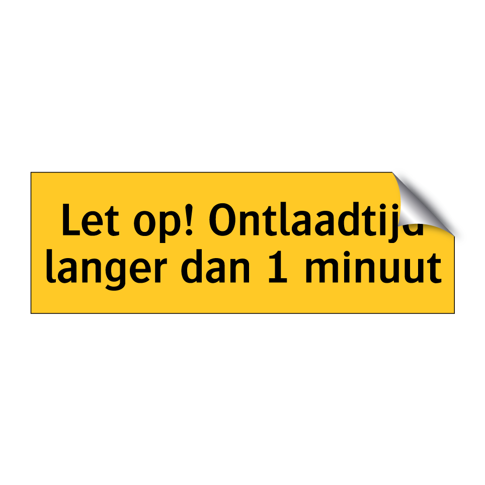 Waarschuwingsbord met de tekst Let op! Ontlaadtijd langer dan 1 minuut