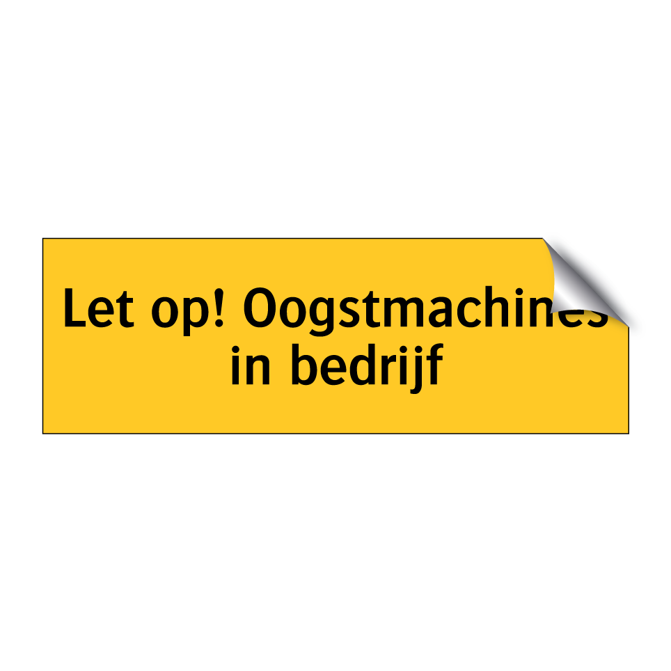 Waarschuwingsbord met de tekst Let op! Oogstmachines in bedrijf