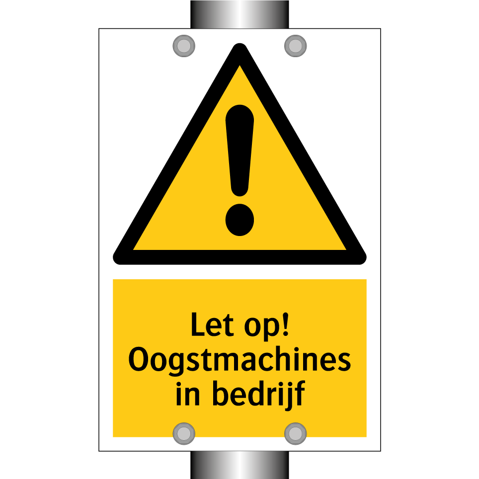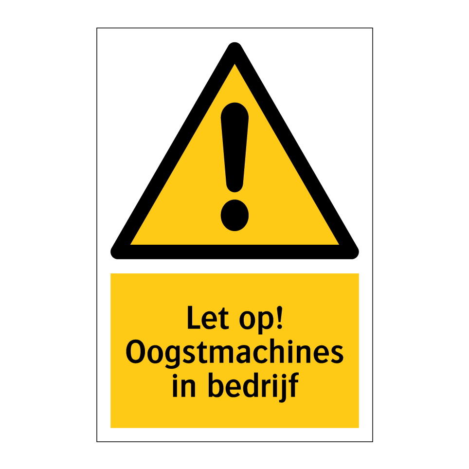 Waarschuwingsbord met de tekst Let op! Oogstmachines in bedrijf