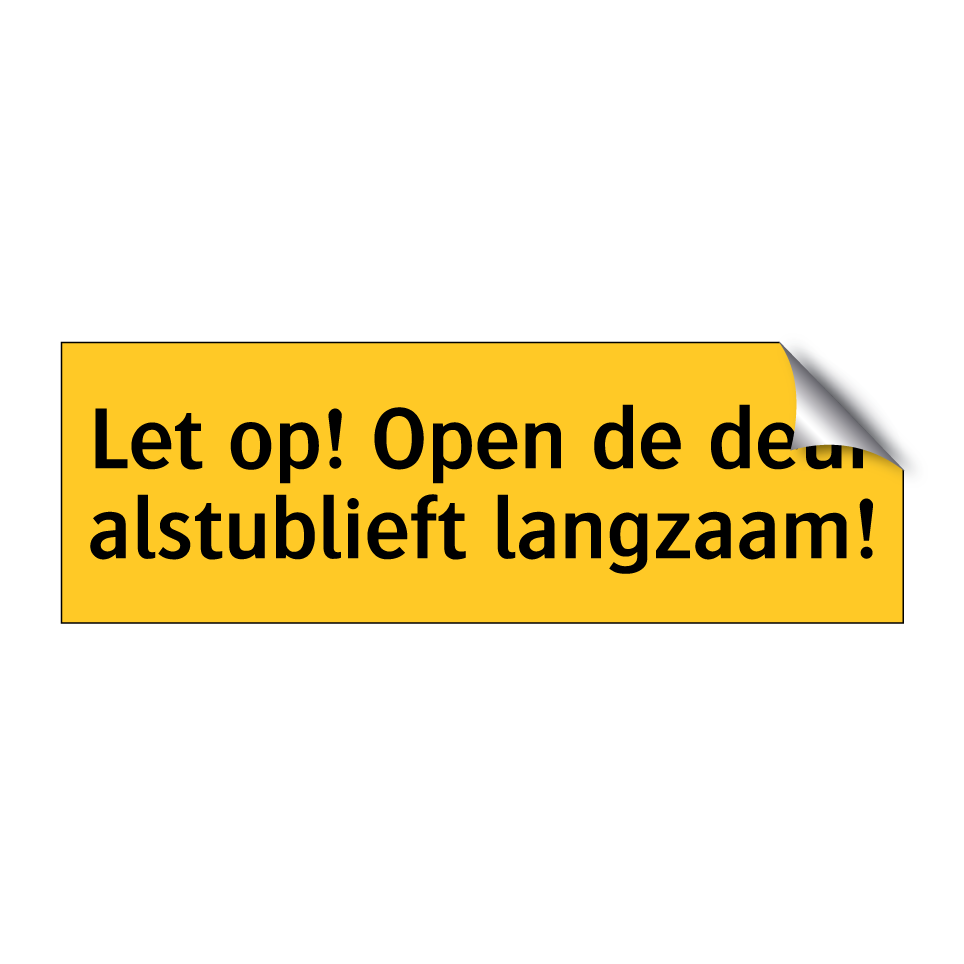 Waarschuwingsbord met de tekst Let op! Open de deur alstublieft langzaam!