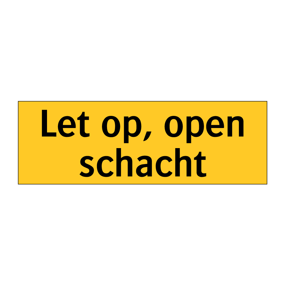 Deze waarschuwingsbord is essentieel voor het waarborgen van de veiligheid in omgevingen waar open schachten aanwezig zijn. Plaats deze bord op strategische locaties zoals bouwplaatsen, magazijnen, fabrieken en andere industriële omgevingen om personeel en bezoekers te waarschuwen voor mogelijke gevaren. Door de opvallende gele achtergrond en zwarte tekst trekt deze bord onmiddellijk de aandacht, waardoor het risico op ongelukken aanzienlijk wordt verminderd. Gebruik deze waarschuwingsbord om een veilige werkomgeving te creëren en ervoor te zorgen dat iedereen op de hoogte is van de aanwezige risico's. Ideaal voor zowel tijdelijke als permanente installaties.