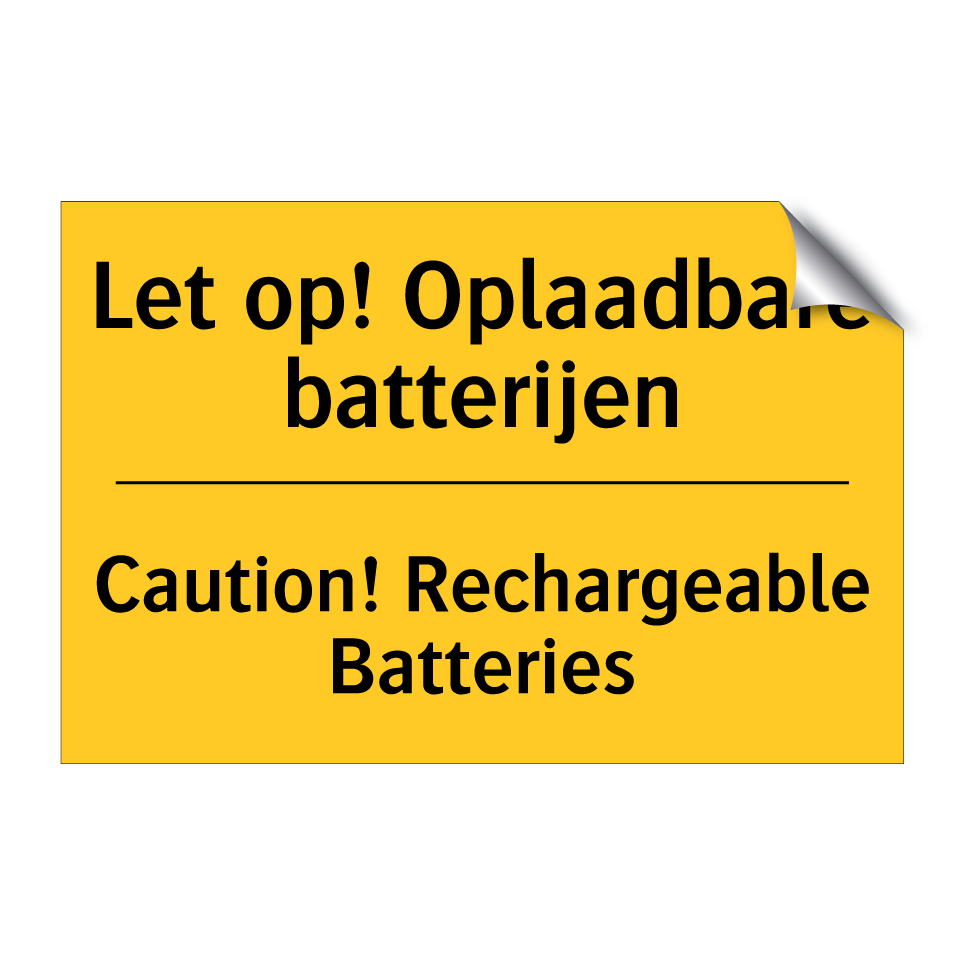 Waarschuwingsbord met de tekst Let op! Oplaadbare batterijen / Caution! Rechargeable Batteries