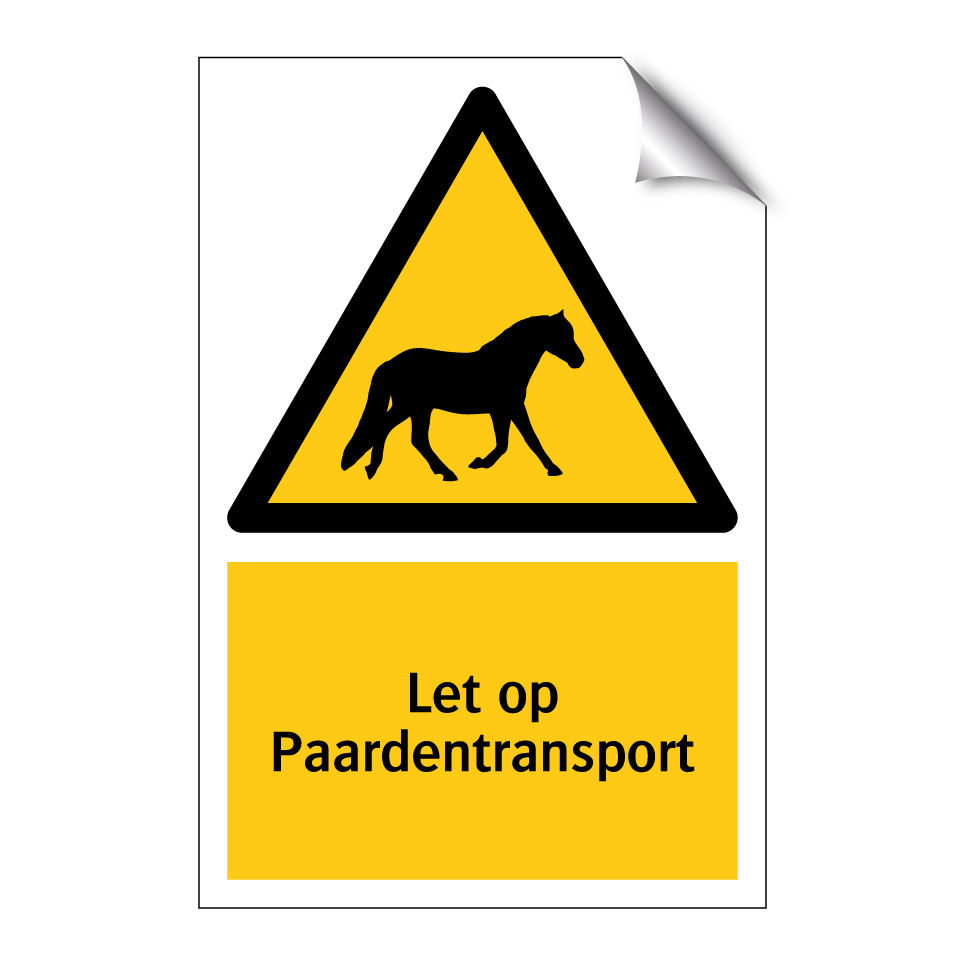 Waarschuwingsbord met de tekst Let op Paardentransport